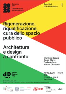 In occasione di Barcellona 2026 Capitale Mondiale dell’Architettura, il Consolato Generale d’Italia e l’Istituto Italiano di Cultura di Barcellona propongono un progetto speciale che mira a offrire uno spazio d’incontro e dialogo tra architetti, docenti universitari, esperti e critici italiani e catalani, con un’attenzione particolare ai contributi italiani nello sviluppo architettonico e urbanistico della Catalogna […]