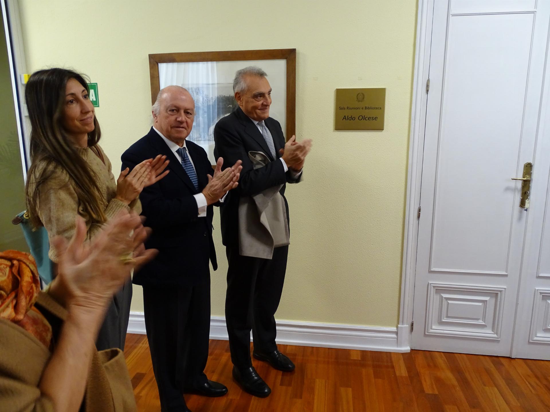 La Biblioteca de la Embajada de Italia en Madrid lleva ahora el nombre de Aldo Olcese Santonja, figura imprescindible del pensamiento económico contemporáneo en España.