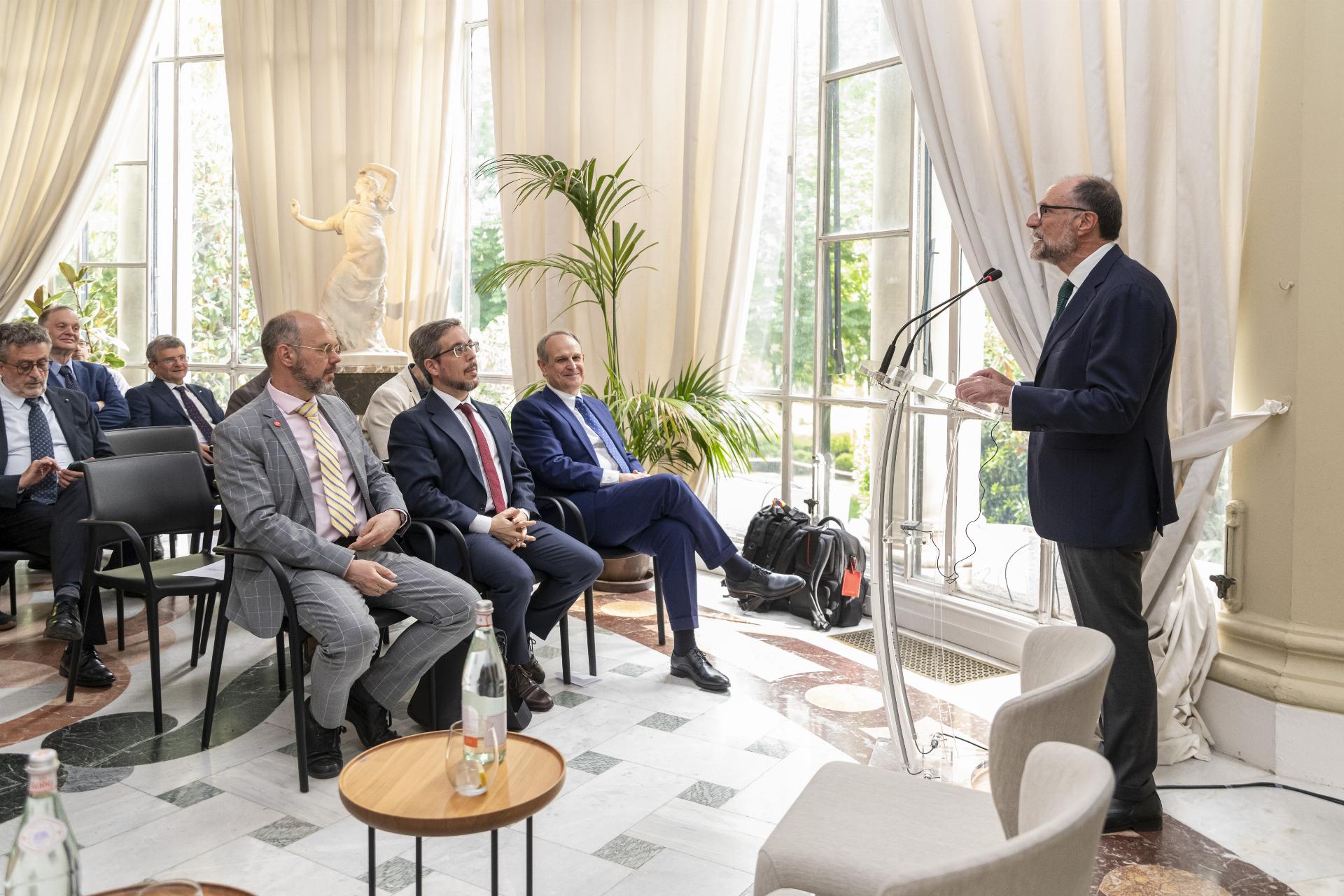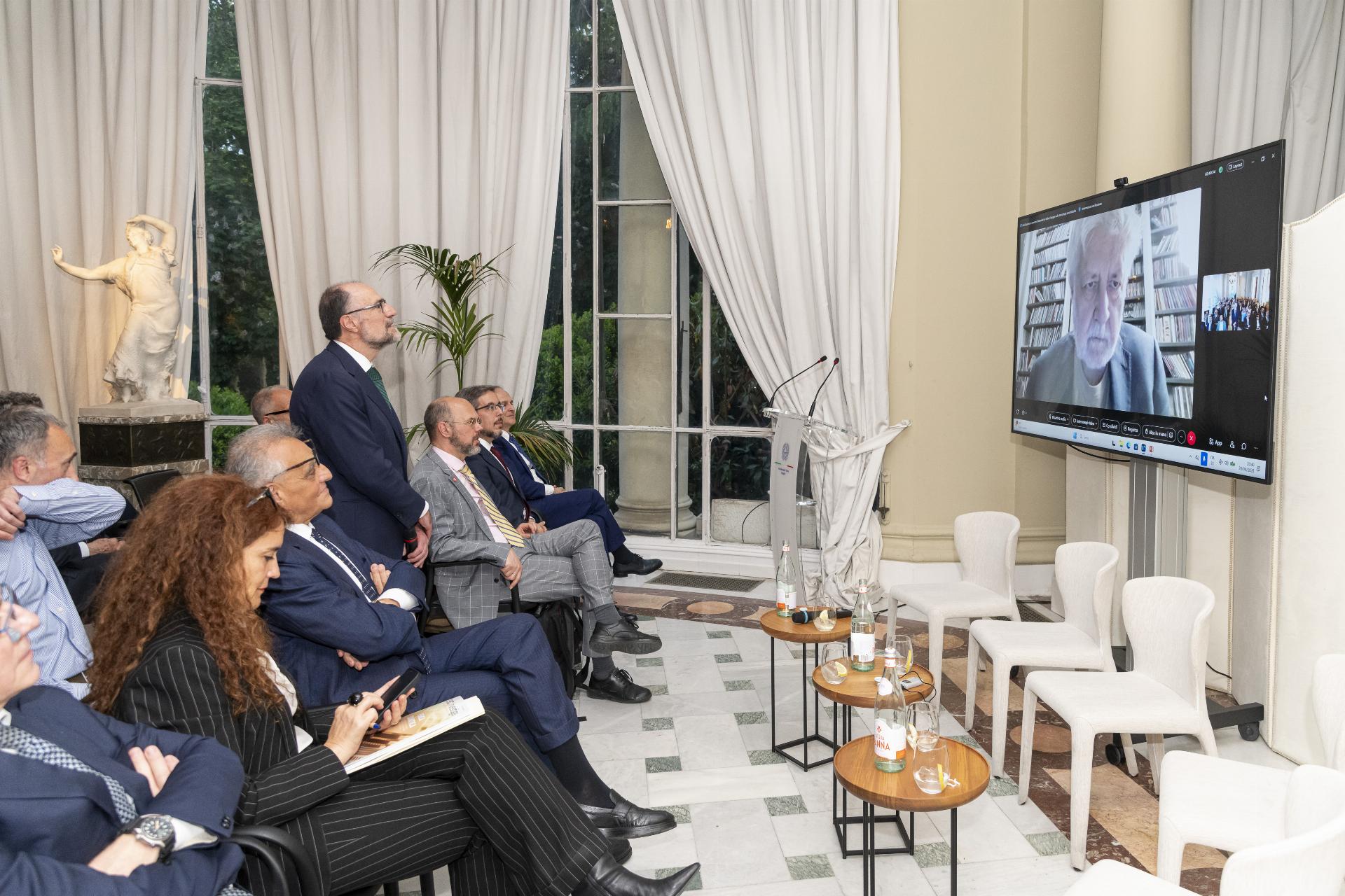 El Embajador Giuseppe Buccino Grimaldi acogió en la Residencia una reunión bilateral, organizada por la Oficina Científica de la Embajada junto con el CSIC, sobre Tecnologías Cuánticas y celebrada en el marco del Día de la Investigación Italiana en el Mundo, conmemorado cada año por la red diplomático-consular en ocasión del nacimiento, el 22 de abril, de Rita Levi-Montalcini, Premio Nobel de Medicina en 1986.