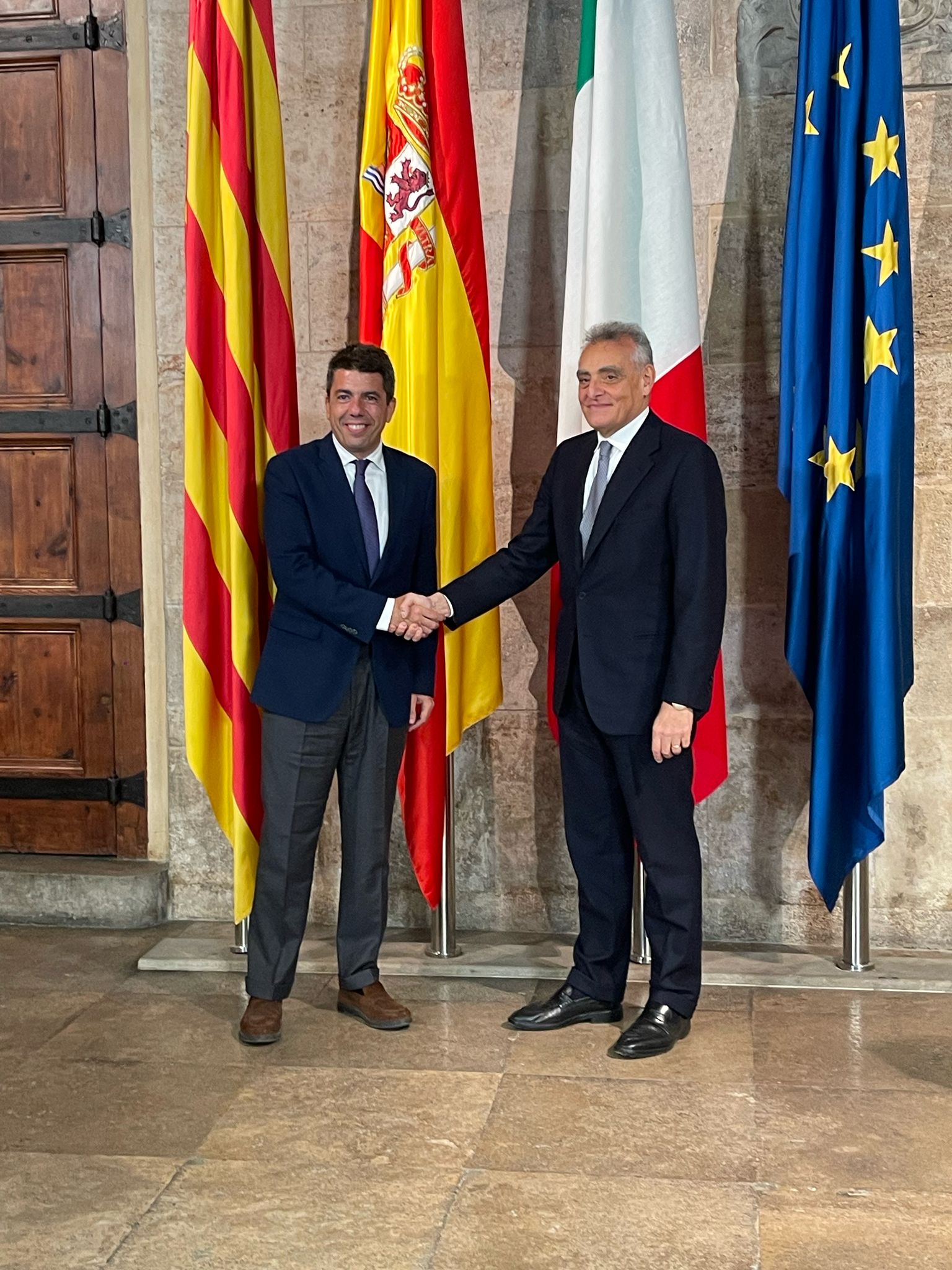 Nel corso della visita l’Ambasciatore ha incontrato la Sindaca di Valencia, Maria José Catalá Verdet, il Presidente della Generalitat Valenciana, Carlos Mazón, la Presidente delle Cortes Valencianes, Llanos Massó Linares, e la Delegata del Governo, Pilar Bernabé Garcia. Al centro dei colloqui i principali temi dell’attualità politica ed economica della regione e in particolar modo le priorità della ricostruzione dopo i tragici avvenimenti causati dalla DANA, per i quali l’Ambasciatore Buccino ha rinnovato il cordoglio e la vicinanza delle istituzioni e del popolo italiano. In tutti gli incontri è stato sottolineato l’interesse reciproco ad approfondire ulteriormente la collaborazione in ambito accademico e nei settori portuale, dell’agricoltura, dell’innovazione tecnologica e della ceramica, cogliendo nuove opportunità di crescita.