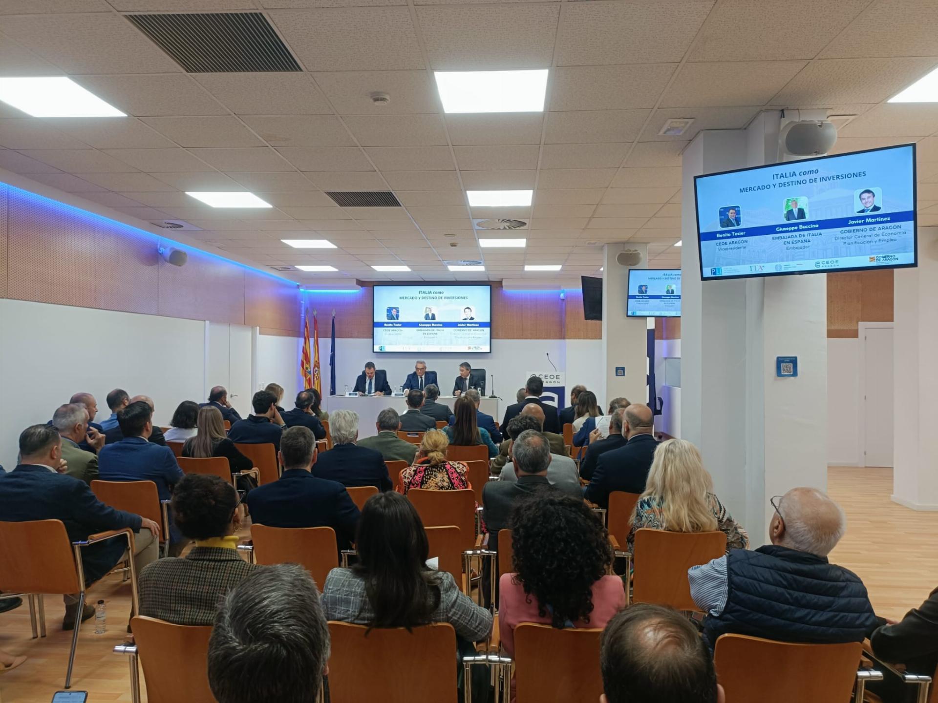 Dopo un saluto alla Presidente del Parlamento regionale, Marta Fernández Martín, e una visita della sede de las Cortes de Aragón, il gioiello mudéjar del Palacio de Aljafería, patrimonio dell’umanità dal 2001, l’Ambasciatore ha partecipato ad una tavola rotonda di presentazione delle opportunità di investimento collaborazione industriale con la Comunità Autonoma dell’Aragona, organizzata dall’Ambasciata, dall’ufficio Attrazioni Investimenti Esteri (AIE) di ICE a Madrid e dalla sezione aragonese della Confederación Española de Organizaciones Empresariales (CEOE).